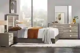 Imported from Italy, this bed is inspired by the aesthetic of cliffside European villas. It features a sophisticated faux stone appearance and a sleek, low-profile silhouette supported by sturdy block legs. This combination of high-end Italian design and a neutral tan finish makes it a versatile centerpiece for any contemporary master suite.