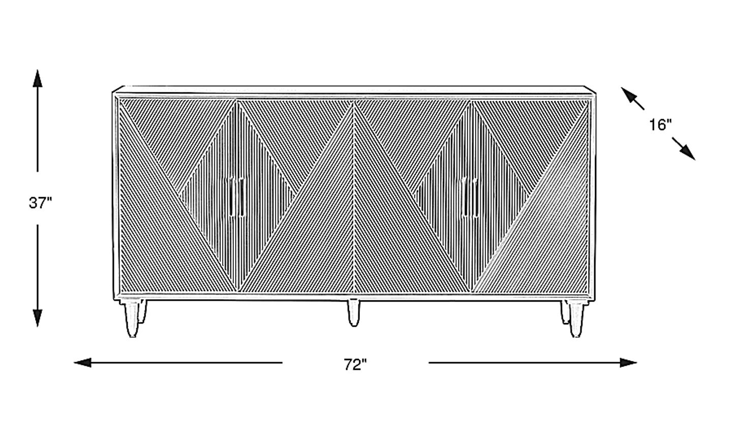 Yes, at 37 inches high and 72 inches wide, this credenza functions beautifully as a media console. Its height is ideal for eye-level viewing in many living room setups, and the 16-inch depth is sufficient for most modern televisions and soundbars. The internal shelving provides ample space for cable boxes, gaming systems, and other media components, allowing you to conceal electronics behind the geometric-carved doors when not in use.