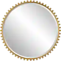 Petite iron spheres line the outer edge of this Montlilly round frame mirror, finished in a timeless gold leaf. Mirror features a generous 1 1/4 bevel. Customer assembly is required.