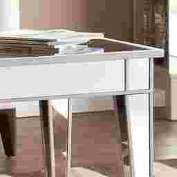 While mirrored furniture provides a sophisticated, high-end look, it is generally recommended for low-to-moderate traffic areas. The mirrored panels are built for durability, but the reflective surfaces will show fingerprints and smudges more readily than wood. For households with active toddlers or pets, this table is best placed in a formal living room or a dedicated entertaining space where traffic is more controlled.
