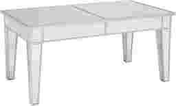 Do you hear Hollywood calling? The glamourous Montui cocktail table certainly looks as though it's straight out of a chic, upscale flat. Glittering looking glass winks at you at every turn,and the sleek silver lines echo minimalist style. Split mirror tabletop provides ample space for entertaining or display. Just the right accent to a high-end living space, this cocktail table begs for attention and a place in your home. Customer assembly required.