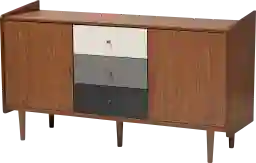 Add a creative highlight to your kitchen or dining room with the visually stunning Moonglow sideboard. Comprised of sturdy wood showcasing a multi-color finish of walnut brown and a cool grey gradient. Three drawers and two shelves behind each door provide ample storage space. Small, round drawer knobs add a minimalist touch. Customer assembly is required.