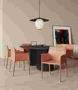 An elegant twist to a classic design. The Moontime brown armchair is a welcoming modern armchair with a curved shape that makes it particularly comfortable. The chair is entirely covered in faux leather, offering a sleek well-tailored appeal. Cleverly constructed to fit any home's decor from industrial and coastal, to glam and boho chic.