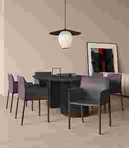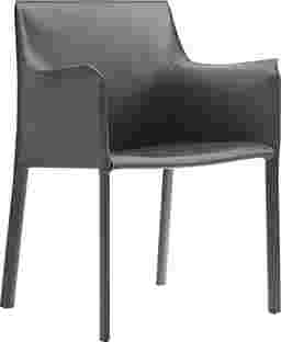 An elegant twist to a classic design. The Moontime gray armchair is a welcoming modern armchair with a curved shape that makes it particularly comfortable. The chair is entirely covered in faux leather, offering a sleek well-tailored appeal. Cleverly constructed to fit any home's decor from industrial and coastal, to glam and boho chic.