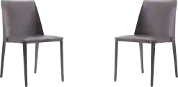 An elegant twist to a classic design. The Moontime gray side chair, set of 2 is a welcoming modern set with a curved shape that makes it particularly comfortable. The chair is entirely covered in faux leather, offering a sleek well-tailored appeal. Cleverly constructed to fit any home's decor from industrial and coastal, to glam and boho chic.