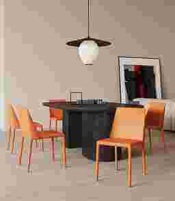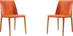 An elegant twist to a classic design. The Moontime orange side chair, set of 2 is a welcoming modern set with a curved shape that makes it particularly comfortable. The chair is entirely covered in faux leather, offering a sleek well-tailored appeal. Cleverly constructed to fit any home's decor from industrial and coastal, to glam and boho chic.