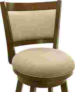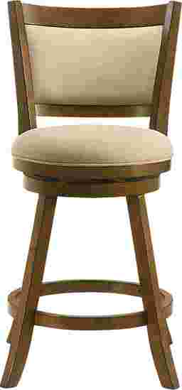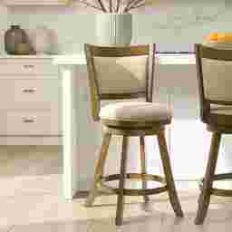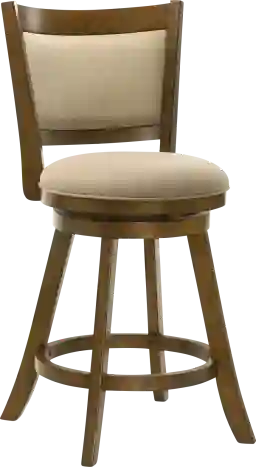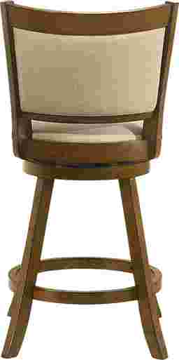 Elevate your dining or bar space with the inviting charm of the Moonworth counter stool, a perfect blend of transitional farmhouse warmth and modern comfort. Designed with soft curves, natural materials, and a rich brown wood finish, this stool brings timeless elegance and practicality to any home setting, whether styled around a cozy kitchen island or a polished entertainment area. Crafted from durable solid natural wood and finished in a smooth brown tone, each stool highlights the natural wood grain and exudes organic appeal. The curved panel backrest provides ergonomic support, while the plush round seat delivers comfort through resilient, soft-to-touch fabric upholstery that holds up beautifully to daily use. A smooth 360-degree swivel mechanism ensures effortless rotation, making it ideal for casual dining, entertaining guests, or enjoying morning coffee. A built-in circular footrest and sturdy flared legs enhance balance and comfort, while the polyester-blend performance fabric