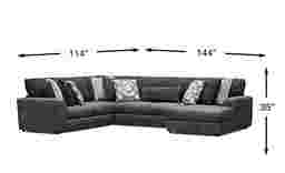 Cocktail hour style meets sleepover comfort with the Moreau Street sectional's easy charm. Transitional in style, this enticing sectional features a design that's equal parts stunning and fun, with black scatterback cushions in an irresistibly textured ultra-soft fabric. Mingle with guests or get together with the whole family in complete comfort across five seats and a chaise, with low-profile padded wedge arms providing added coziness and flare. Plush, rounded seat cushions deliver indulgent relaxation and are also removeable and easy to clean. Coordinating pillows are included. Upholstery: 100% Polyester.