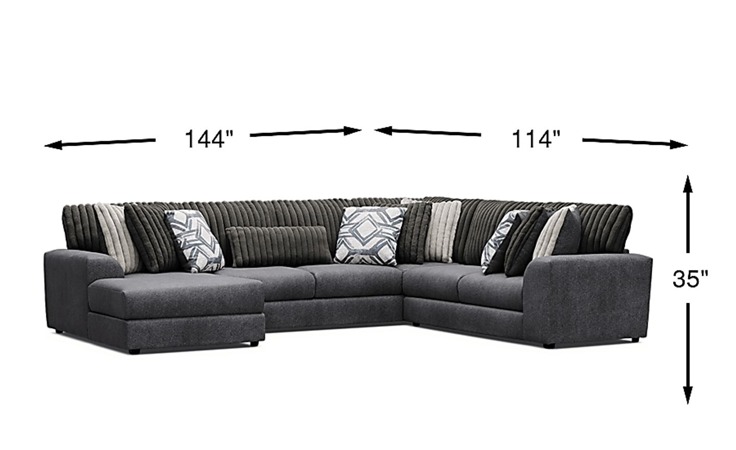 With a substantial footprint of 144"w x 114"d, this is an expansive piece designed for large, open-concept spaces or grand living rooms. To ensure a comfortable fit, we recommend using painter's tape to outline these dimensions on your floor, allowing for at least 18-24 inches of clearance for walkways. Before delivery, you should also measure your doorways and hallways to ensure the 35-inch height and deep profile can be navigated into your home.