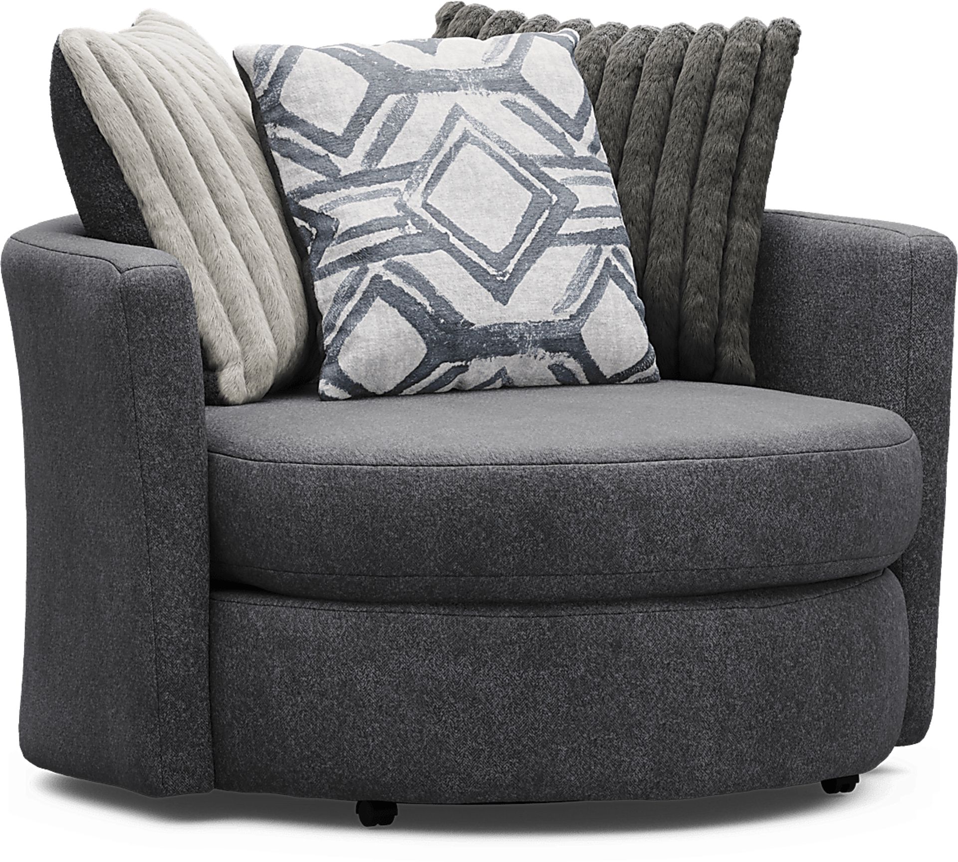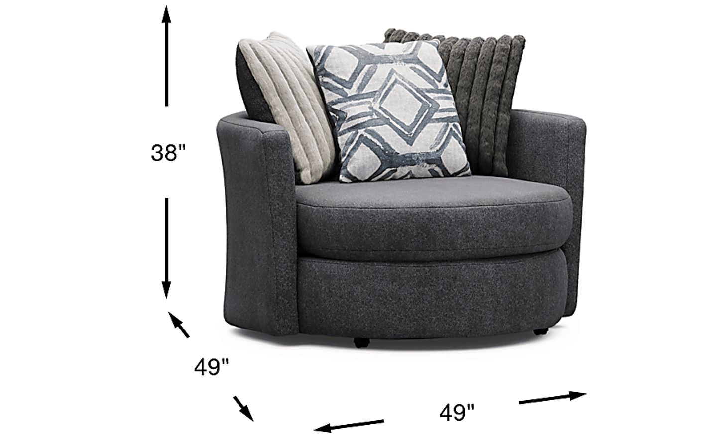 While this chair has a substantial 49" x 49" footprint, its swivel design actually makes it highly efficient for smaller or open-concept layouts. Because it can rotate 360 degrees, it can serve as seating for two different zones—such as a living room and an adjacent home office or dining area—eliminating the need for multiple pieces of furniture. We recommend measuring your space carefully to ensure the wide, rounded silhouette has enough clearance to rotate freely.