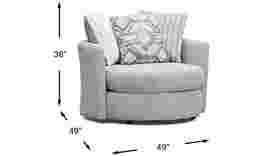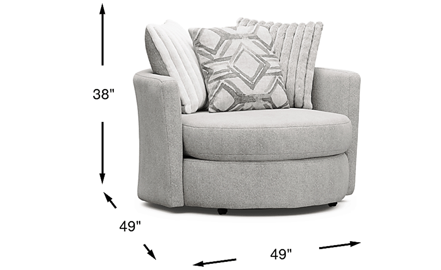 Cocktail hour style meets sleepover comfort with the Moreau Street swivel chair's easy charm. Transitional in style, this enticing piece features a design that's equal parts stunning and fun, with gray scatterback cushions in an irresistibly textured ultra-soft fabric. It's also easy to stay in the conversation with its 360 degree swivel function. A plush, rounded seat cushion delivers indulgent relaxation and is also removeable and easy to clean. Upholstery: 100% Polyester.