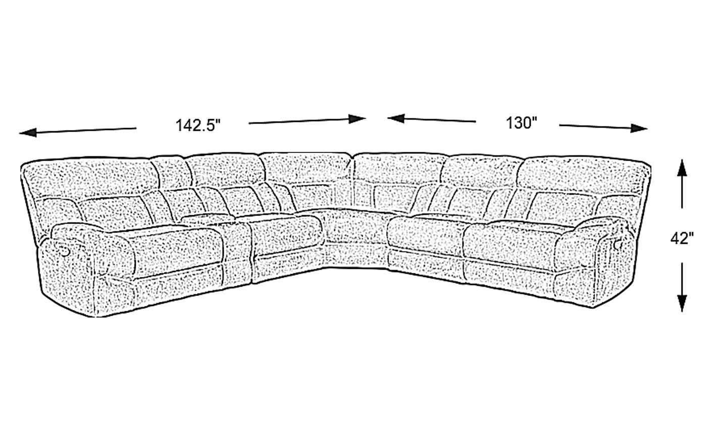Ideal for movie nights or entertaining guests, the Morello sectional offers plush padded comfort from head to toe and seats up to five people. The soft gray chenille upholstery is luxurious to the touch, while its pillow arms and bustle back seats deliver support from every angle. The convenient lift top console lets you keep track of remotes and other small items with ease and its two cupholders ensure your refreshments are always close by. Three dual power reclining pieces allow you to adjust the headrest and footrest of your seat and give you the option of a lay flat position with just the touch of a button. USB power ports let you plug in and unwind. 100% Polyester