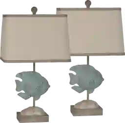 The Moreno Bay table lamp is a super cute antique blue and light brown wood fish lamp. Comes as a set of 2, perfectly paired for any room! Customer assembly required.