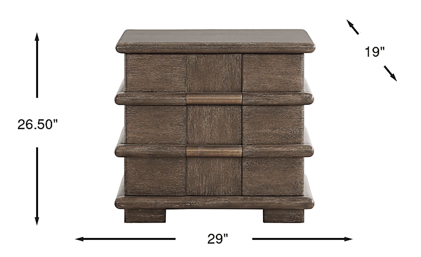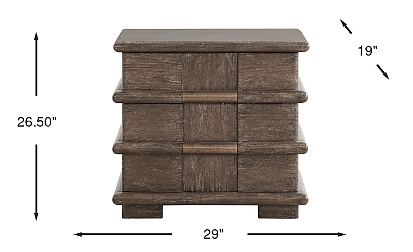 While this nightstand is designed with a bold, 29-inch wide profile that suits suburban master bedrooms, it can also serve as a multi-functional piece in a smaller urban home. Thanks to its significant storage capacity and sophisticated bass pulls, it can double as an accent chest or end table in a living area where floor space is at a premium but extra drawer space is required.
