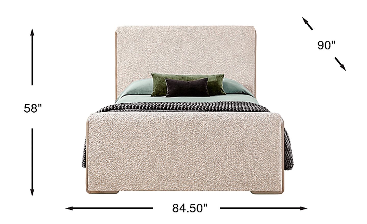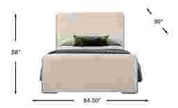 Moments of tranquility mingle with natural warmth as the Moreno bed's textural contrast and organic tones create a calm, restful retreat. This transitional piece features an upholstered headboard and footboard in plush ivory that adds a soft dimension. The stone-gray oak-veneered frame peaks through the sides, lending a subtle, sculptural finish. Mattress and foundation (if required) sold separately. Bed shown is queen size.