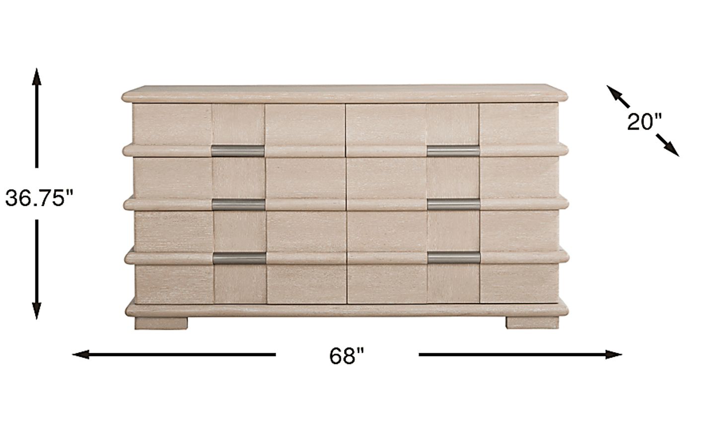 Measuring 68 inches in width and 36.75 inches in height, this dresser is designed as a substantial anchor piece for a master bedroom. Its generous 20-inch depth provides significant storage volume for a full wardrobe while maintaining a refined profile that fits comfortably against the wall without impeding the flow of the room.