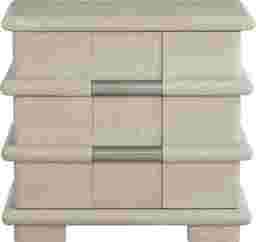 Moments of tranquility mingle with natural warmth as the Moreno nightstand's textural contrast and organic tones create a calm, restful retreat. Transitional in style, this piece is crafted of stone-gray oak-veneers and features rounded horizontal molding for a bold yet gently layered look. Three drawers offer ample space for your bedside essentials. Square block legs and silver pulls complete the ensemble with quiet sophistication.