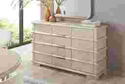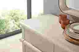 This piece is crafted with high-quality oak veneers, which offer the beautiful grain patterns and organic warmth of natural wood. Veneers are a preferred choice for their stability; they are less prone to the warping or splitting that can occur with solid wood when exposed to changes in humidity. The stone-gray finish is meticulously applied to highlight these natural textures while maintaining a sophisticated, transitional look.