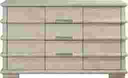 Cultivating an atmosphere of serene ease and intimate connection, the Morena server introduces a tranquil balance of organic warmth and sculptural simplicity. Crafted with oak veneers in a soft stone-gray finish, this transitional piece rests on square block legs and features rounded horizontal molding for a bold yet gently layered look. Two cabinet doors reveal spacious shelving, while three center drawers provide ample room for smaller dining essentials. Silver pulls seamlessly blend in with the drawers, adding a sleek yet subtle element.