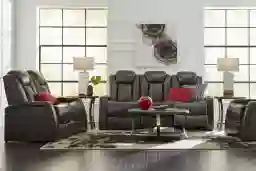 Upgrade your living space with the incredible comfort and casual contemporary style of the Moretti collection. Designed with lounging in mind, this cozy collection is upholstered in supple brown top grain leather where the body touches with a contrasting stitching detail. Touch activated dual power reclining chaise footrests and headrests on the sofa and recliner places customizable comfort at the tips of your fingers. Bucket style seating adds sumptuous comfort to each piece, while a lighted cupholder and storage in each armrest keeps all of your essentials close at hand. The star of this collection is the power reclining sofa, with a center seat back cushion that folds down to reveal a table top with two cupholders, two wireless charging pads and magazine storage. Upholstery: Top grain leather where the body touches and vinyl sides and backs. Leather is a durable, low maintenance product, however, general regular maintenance is necessary. To keep your leather clean, vacuum it regularly, removing any dust, and clean it with water and a mild non-detergent soap. Accent pillows not included.