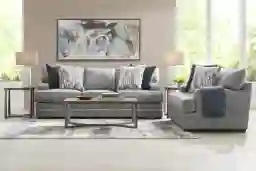 The Morgan Falls sofa features plush, loose seat cushions and a comfortable pillow back, designed for optimal relaxation. While specific cushion filling densities can vary, Rooms To Go sofas are generally constructed with quality materials aimed at providing good support and maintaining shape with proper care, such as regular fluffing and rotating of cushions to ensure even wear.
