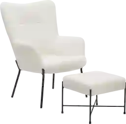 Add industrial flair to your seating area with the cozy Morlaix accent chair and ottoman set. This set features modern black metal legs that support a white sherpa upholstery. Customer assembly is required.