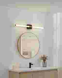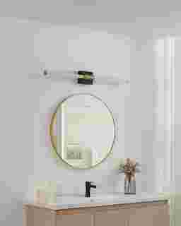 Sleek and streamlined, the Moross Home Brass Sconce adds modern sophistication to bathroom and vanity spaces. A matte black backplate is paired with gold accents for a bold, minimalist look, while the slim LED bar delivers bright, even illumination. The integrated LED offers adjustability, allowing you to choose the perfect color temperature for your space. Ideal for contemporary bathrooms, powder rooms, or over modern mirrors. Professional installation by an electrician is recommended.