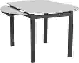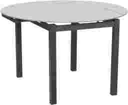 With a sleek silhouette that mixes subtle curves with straight lines, the Morrow table is a wonderfully contemporary option for your dining area. The tempered gray glass surface is a snap to cleansimply wipe away spills with a damp cloth. Supported by a black powder coated base, the table top extends to 47" round with two 8.5" leaves, making it an ideal option for smaller spaces.