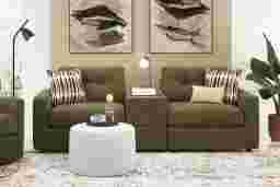 Discover the limitless possibilities of the Drew & Jonathan ModularOne, thoughtfully designed with comfort and flexibility in mind. This customizable seating solution features individual pieces that can be configured to any shape your room needs. Game days, movie nights, sleepovers, and everyday relaxation are all better when the seating arrangement you want is always right at your fingertips. Each individual piece is upholstered on all sides in our signature fabric, New Horizon. This soft, moss-colored chenille includes Repreve yarn, made with recycled plastic bottles. The dual seating area has welted track arms, top-stitched seat cushions and button-tufted back cushions for an elegant silhouette. A media console provides hidden storage, a USB charging port, wireless charging, Bluetooth speaker, and doubles as a side table with a sleek acrylic top. A matching pillow provides the perfect final touch. Includes LAF chair, console, and RAF chair. Visit a showroom to learn more about individual components and to work with a sales specialist to customize your own configuration today. Upholstery: 100% Polyester.