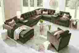 Discover the limitless possibilities of the Drew & Jonathan ModularOne, thoughtfully designed with comfort and flexibility in mind. This customizable seating solution features individual pieces that can be reconfigured to the shape you need for game days, sleepovers, or just everyday relaxation. Each piece is upholstered on all sides in our signature fabric, New Horizon. This soft, moss green chenille includes Repreve yarn, made with recycled plastic bottles. The collection boasts welted track arms, top-stitched seat cushions and tufted back cushions for an elegant silhouette. Two media consoles offer storage, USB ports and wireless charging, Bluetooth speakers, and double as side tables with acrylic tops. A Sealy Royale mattress is tucked inside the armless loveseat for guests who would like to extend their stay. Includes LAF chaise, RAF seat, two media consoles, wedge seat, armless chair, and loveseat. Upholstery: 100% Polyester.