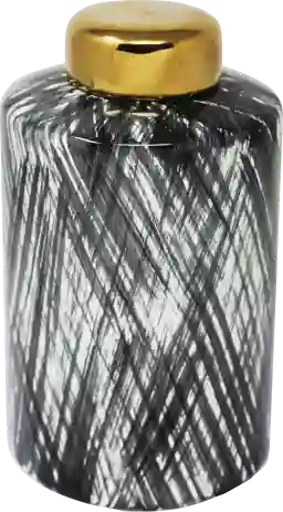 For a modern or glam look, we recommend styling this jar in a group of three using the "rule of odds." Because this jar stands 10 inches tall, it pairs beautifully with shorter decorative trays or taller metallic sculptures. Placing it on a mirrored surface or a dark wood console table will help the bold black and white stripes pop as a sophisticated focal point.