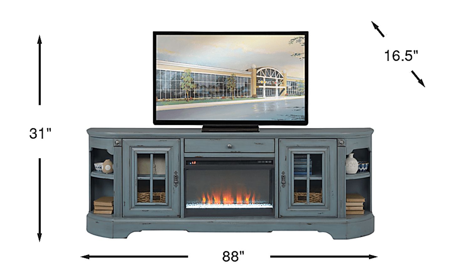 Mountain Bluff II Blue 88 In. Console With Electric Fireplace