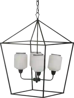 With its sleek, geometric shape, opaque glass, and modern style, the Mountain Holly square iron and glass chandelier adds chic simplicity to any space. Feature this stunning piece in a lofty entryway, above an expansive dining table, or in a luxurious master bathroom for a touch of industrial style. The crisp contrast of black and white enables this striking chandelier to complement any color scheme. Recommended to be installed by a professional electrician.