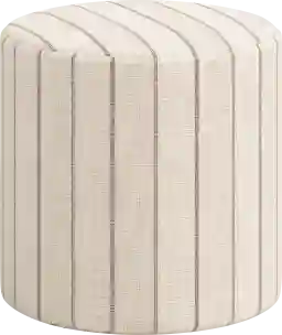 The subtle striped design on this beige ottoman adds a sophisticated layer of texture and visual interest without overwhelming your existing decor. In contemporary design, a neutral-toned pattern like this serves as a "bridge" piece, allowing you to coordinate various solid-colored furniture items. We recommend pairing it with other natural textures, such as a wooden coffee table or a wool rug, to enhance its handcrafted, luxurious feel.