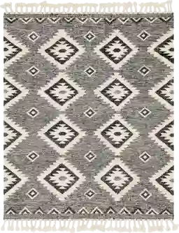 The geometric tribal pattern of the Mulde Collection brings an exciting southwestern flair to any room. The woven construction contrasts with raised areas and fringe for even more visual interest. The subdued color palettes and transitional design keep it from becoming too overbearing whether in a modern or traditional style room.
