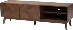Shape the layout of your bedroom with the refined, energetic style of the Munstead brown console. This console exudes natural warmth with its walnut brown finished wood frame. Two open shelves create a convenient display for media devices while two shelves behind the doors offer secure storage space. The Munstead features a cord management hole in its back panel for quick and easy setup. With a sleek, streamlined design, the Munstead brown console is a fantastic complement to the modern home. Customer assembly is required.