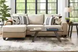 This sectional features a "runway-ready" boho aesthetic with a sophisticated two-tone design: soft beige woven fabric on the seating surfaces and a smooth light brown base and arms. This earthy color palette is highly versatile, allowing you to anchor a room with traditional roots while adding modern visual interest. The included scatterback and accent pillows are designed to bolster this warm, chunky personality, making it easy to coordinate with natural wood coffee tables or jute rugs.