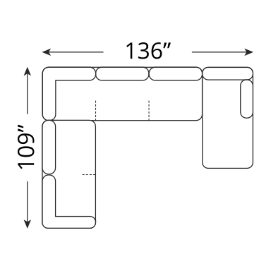 Measuring for a sectional is critical given its substantial 136"w x 109"d footprint. We recommend using the "2/3 rule," where your seating occupies roughly two-thirds of the available floor space to maintain comfortable traffic flow. Before ordering, ensure you have at least 18-24 inches of clearance for walkways. It is also vital to measure all doorways, hallways, and tight corners along the delivery path to confirm the pieces can be moved into your home.