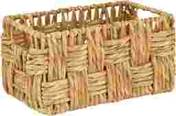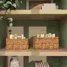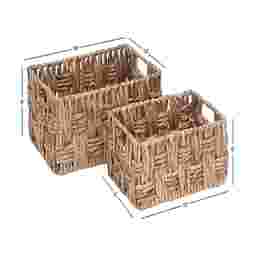 With dimensions of 13"w x 9"d x 6"h, these baskets are specifically designed for versatile organization in compact spaces. Their rectangular profile allows them to sit flush against walls or inside standard shelving units. They are an ideal solution for "drop zones" in an entryway to organize mail and keys, or for tidying up vanity essentials in a bathroom.