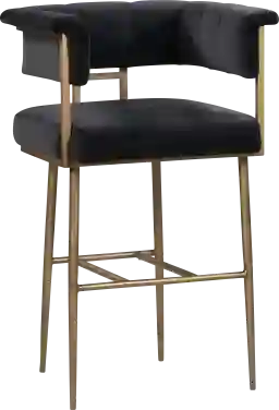 Perfect for an elegant entertaining ensemble or a casual weeknight meal, the Myriah barstool is sure to elevate your dining or kitchen space. Boasting rich upholstery, rolled arms and an exposed frame finished in antique brass it will certainly add glam to your dining space. Customer assembly is required.