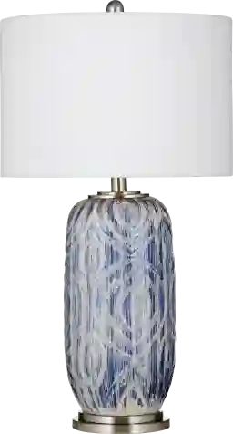 This lamp features a transitional design that serves as a versatile bridge between modern and traditional styles. The blue and white pattern acts as a classic accent that pairs well with neutral palettes, such as beige or gray furniture. For a cohesive look, our experts suggest echoing the blue tones of the base in other room elements, such as accent pillows or wall art, to tie the space together.