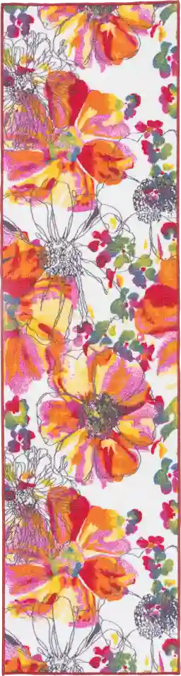 With its stunning floral design in vibrant shades of orange, red, green, and white, the beautiful Nadelyn rug adds warmth and contemporary elegance to any interior space. The looped nylon pile measures a low 0.2" so the rug traps less dirt and is more resistant to wear. Its non-skid backing eliminates the need for a rug pad and is safe for all types of floor. This is the perfect print rug for living room, bedroom, hallway, or wherever you want to add style and comfort.