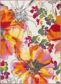 With its stunning floral design in vibrant shades of orange, red, green, and white, the beautiful Nadelyn rug adds warmth and contemporary elegance to any interior space. The looped nylon pile measures a low 0.2" so the rug traps less dirt and is more resistant to wear. Its non-skid backing eliminates the need for a rug pad and is safe for all types of floor. This is the perfect print rug for living room, bedroom, hallway, or wherever you want to add style and comfort.