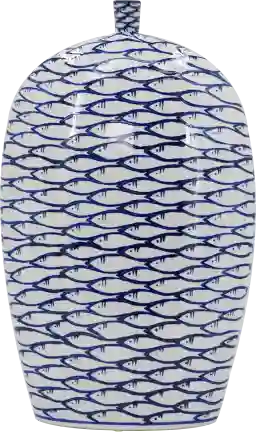What decor styles best complement a blue fish patterned vase?
