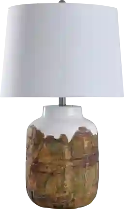 A ceramic base is an excellent choice for durability and stability. Because ceramic is a naturally dense and heavy material, this lamp offers a sturdy, tip-resistant foundation that is well-suited for high-traffic living rooms or homes with active pets and children. Furthermore, the "mountain style" finish is unique to each piece, meaning the intricate coloring and patterns are built into the material rather than just sitting on the surface, helping it maintain its rustic aesthetic over time.