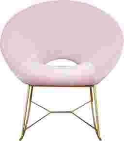 The Nagel rocking chair has clean lines and lavish velvet upholstery. Featuring a barrel shaped seat with a key hole back supported by gold iron rockers. Sit back and relax into the comfort of this fabulous chair. Customer assembly is required.