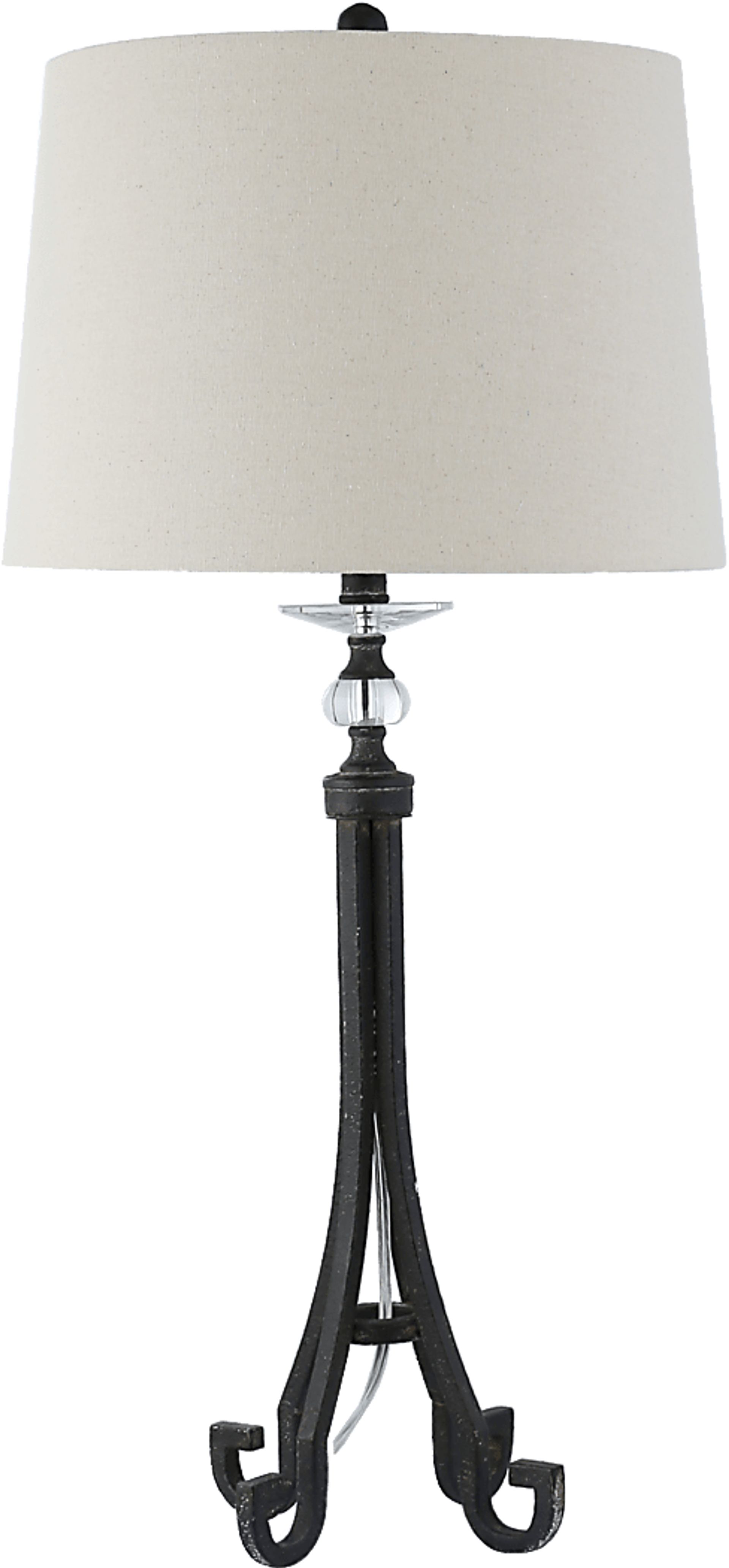 The Nagle Sea table lamp epitomizes a classic look that will fit perfectly into your home. Crafted of sturdy steel, its black base harbors a timeless, traditional design. Curved feet and translucent accents at the top of the base add visual interest. This lamp accommodates a maximum 100-watt standard bulb and includes a convenient three-way switch.
