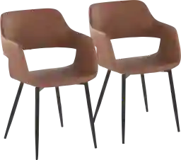 Inspired by contemporary design, the faux leather Naibor II Brown Arm Chair, Set of 2 features a low backrest with a slight opening, ergonomically designed to fit your body, armrests for additional comfort and sleek metal legs. Available in a variety of color options, choose the color that suits your space best Customer assembly required.