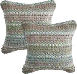 Decorate your space with this beautiful set of 2 Najeeb boho throw pillows. Handmade from a textured cotton blend fabric, it boasts an authentic chindi finish for both quality and style. With a classic striped pattern, it blends effortlessly into your existing decor, while adding a fresh look. Perfectly placed on your sofa, chair, or bed, it is sure to add a beautiful pop of color and dimension. Poly insert included.