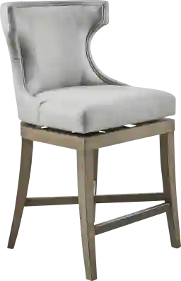 Define your dining area with the elegance of the Nallie counter height stool with swivel seat. Upholstered in a light gray fabric, this wingback style dining chair features clean lines and curve, for a sophisticated silhouette. A bronze kickplate protects the footrest from every day wear and tear, while the swivel function allows you to easily rotate the rectangular seat. The solid wood legs feature a smooth reclaimed gray wood finish that complements the upholstery to create a beautiful transitional look in your dining room. Customer assembly is required. Max weight capacity 300 lbs.
